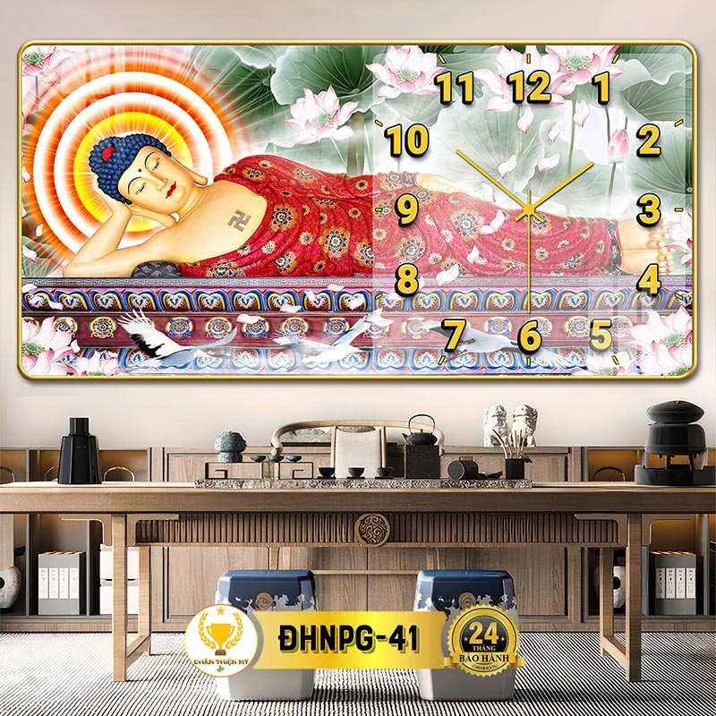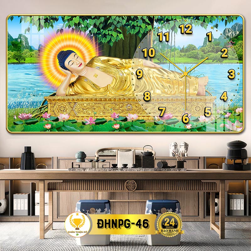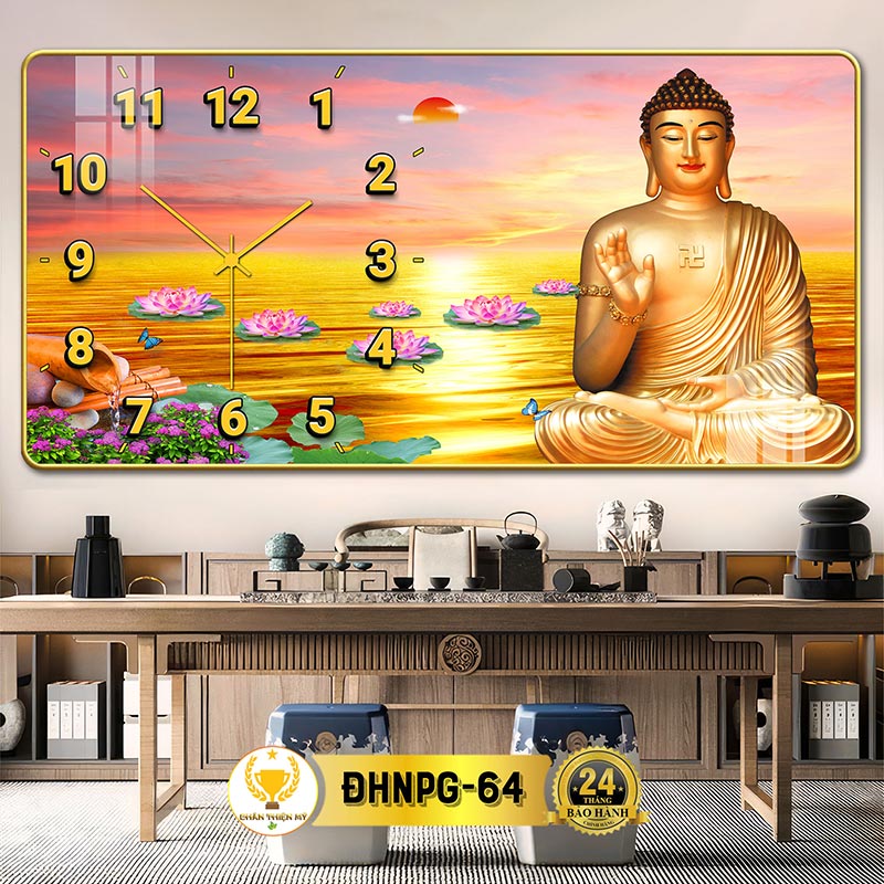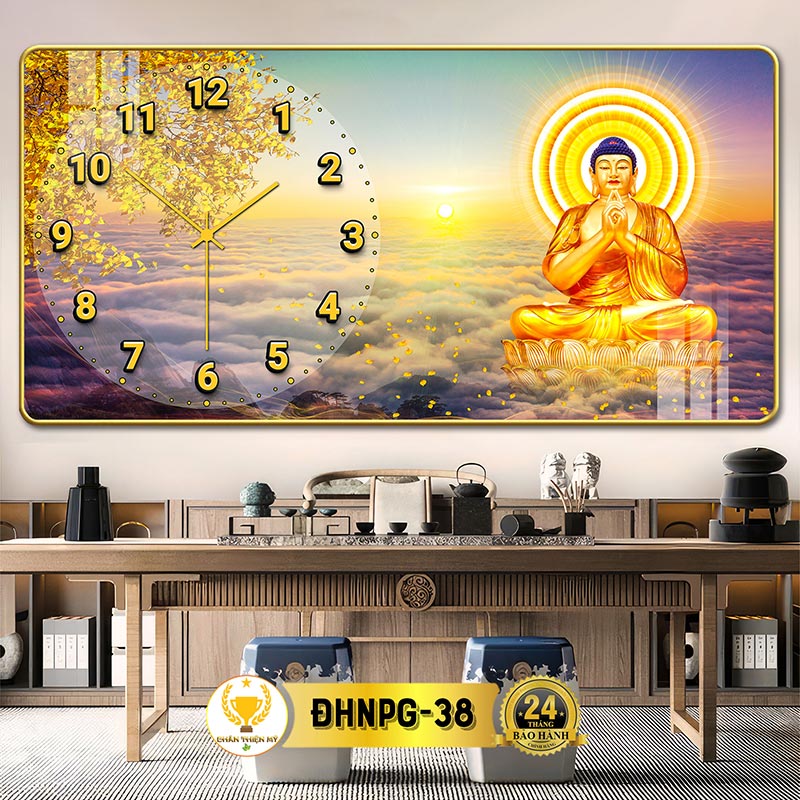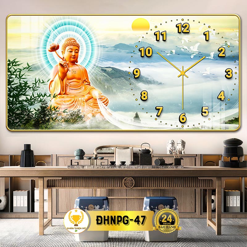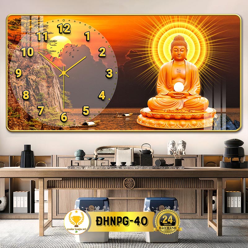 Tranh Đồng Hồ Tráng Gương Phật A Di Đà CHÂN THIỆN MỸ, Treo Tường Decor Làm Quà Tặng, Kim Trôi Không Tiếng Động CĐHNPG-05