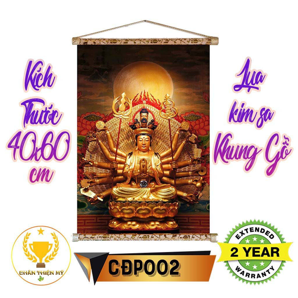 ✅ Tranh không bị lóa khi treo trước bóng điện, mà càng đẹp ánh lên màu kim sa tôn lên vẻ cao cấp và trang nghiêm.