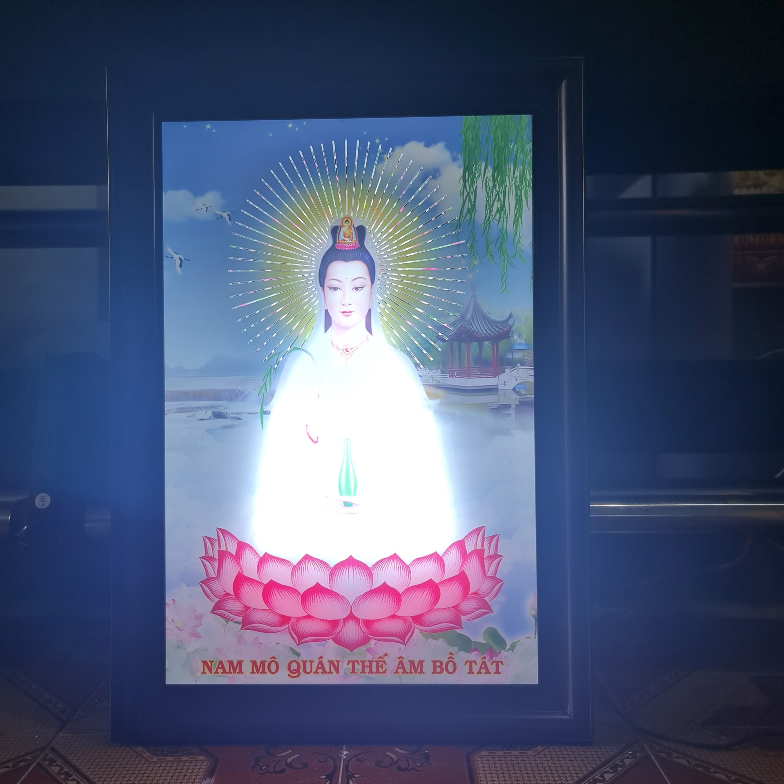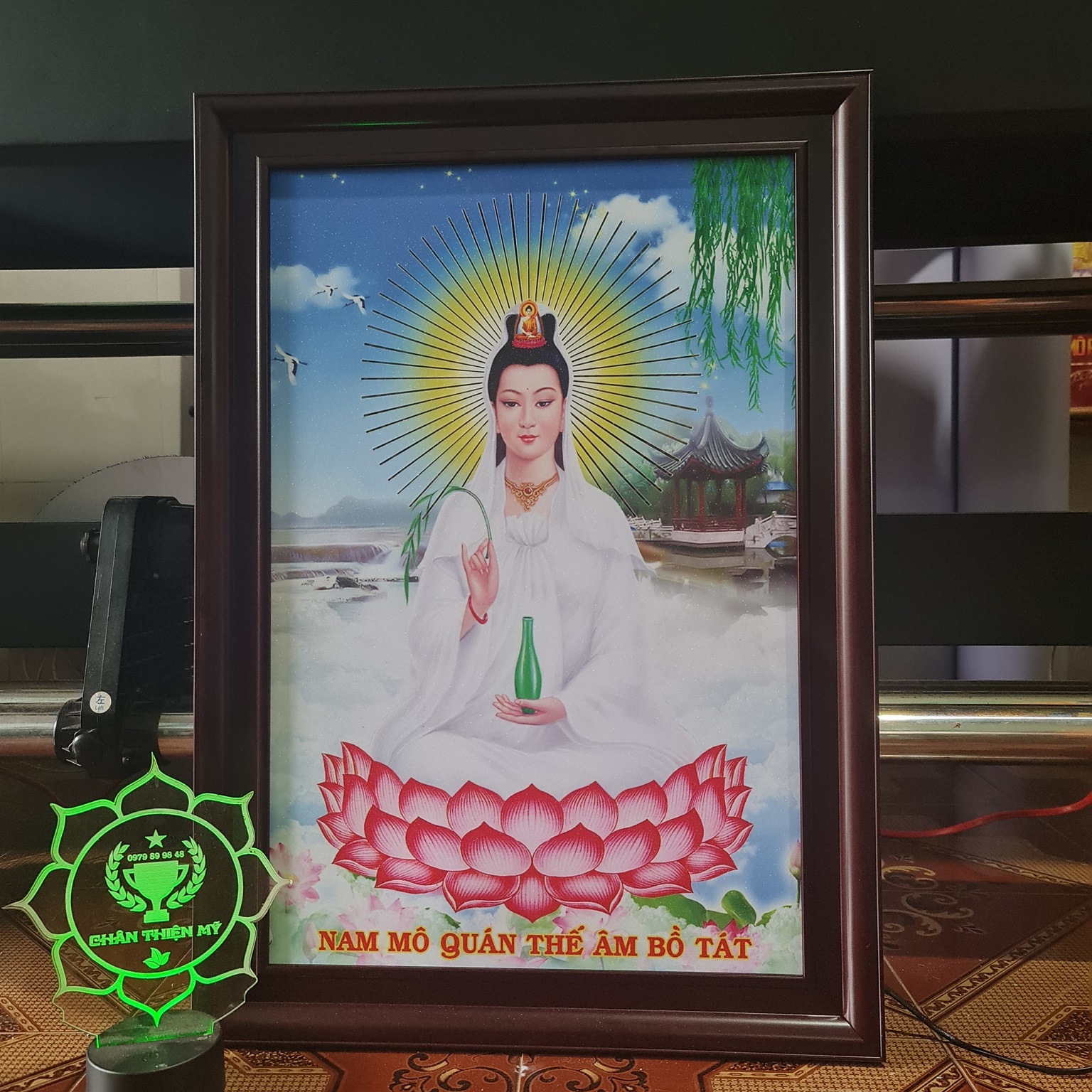 ✅ Tranh không bị lóa khi treo trước bóng điện, mà càng đẹp ánh lên màu kim sa tôn lên vẻ cao cấp và trang nghiêm